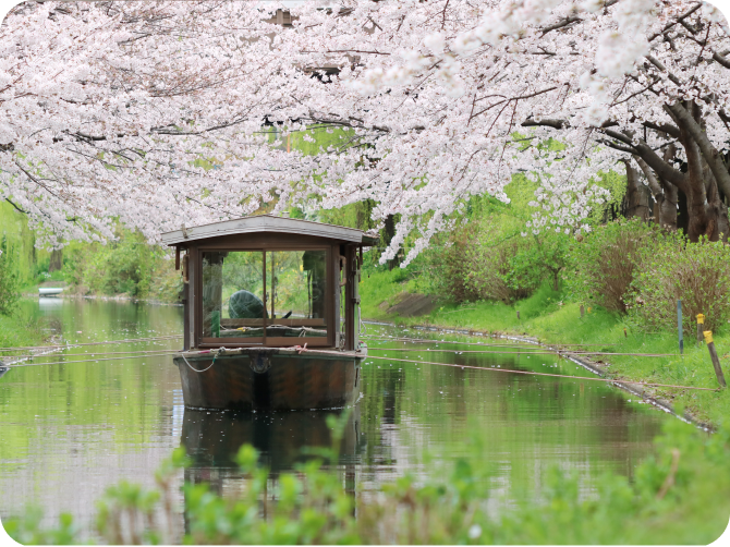 かつて米や酒を運んだ水運を今に伝える観光舟。