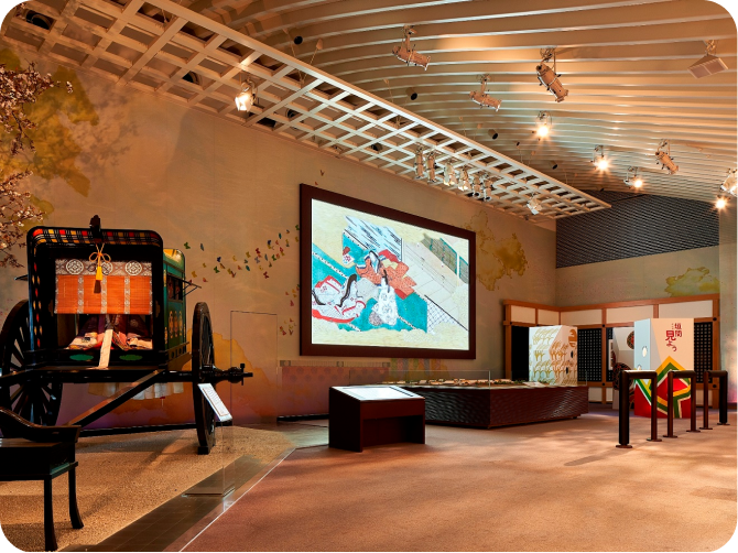 映像展示や模型を通して、源氏物語の雅な世界を楽しめます。